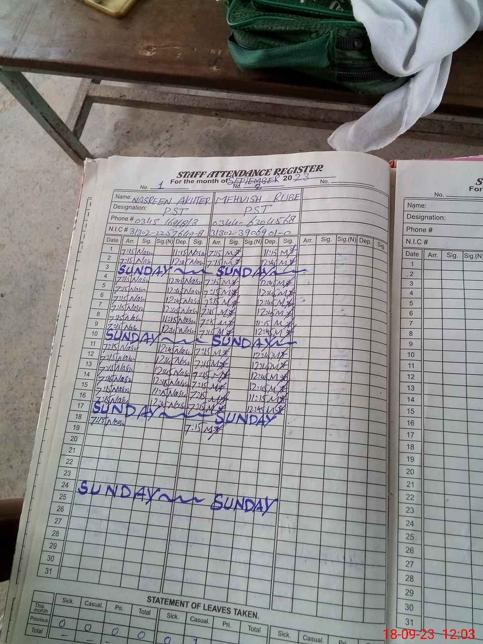| Name: Na**** Ak**** Designation: (School Headmaster's/Headmistress's) PST Phone/Cell Number: 03**** |