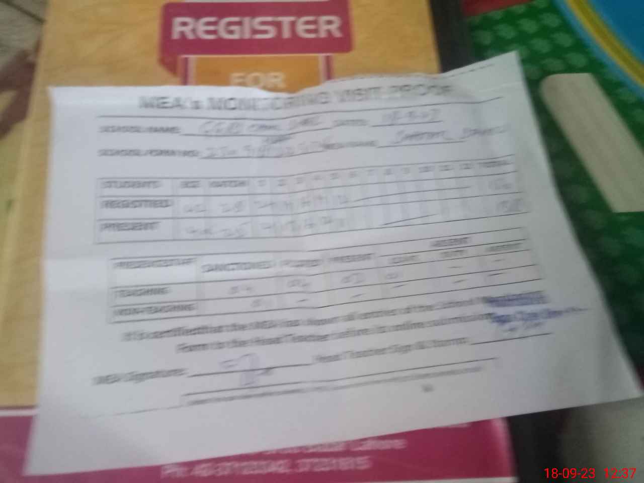 | Attendance Register | Head Teacher | MEA with School | Visit Proof |