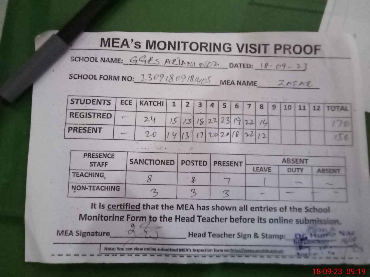 | EMIS Code: 36410108 | Name of School: GGES ARJANI WALA NO. 2 | |||
