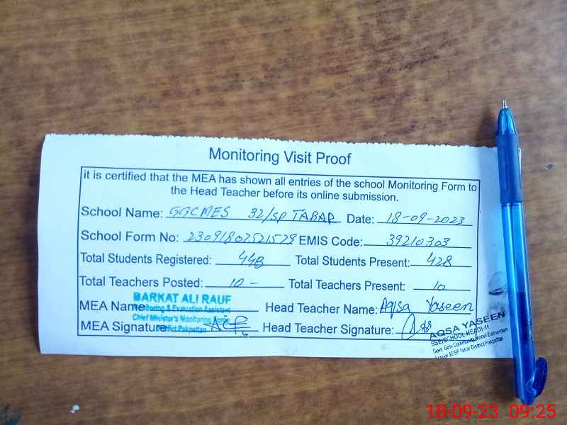 | EMIS Code: 39210303 | Name of School: GGHS CHAK NO.32 SP TABAR | |||