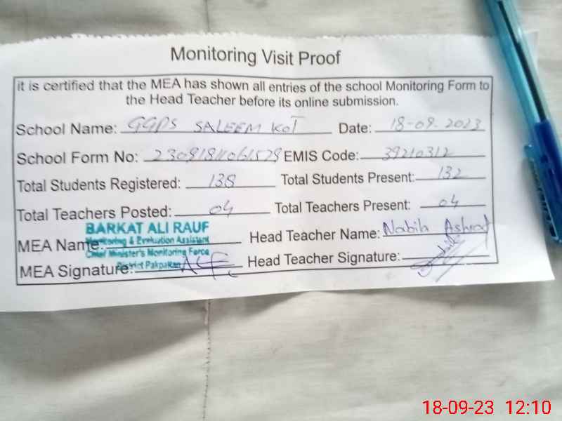 | EMIS Code: 39210312 | Name of School: GGPS SALEEM KOT | |||