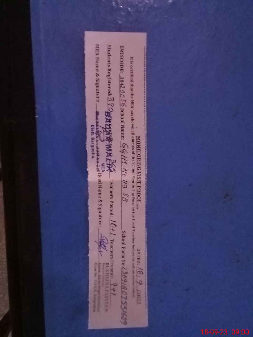 | Certified that this School was Inspected by the Undersigned MEA/DMO Today and the Information Stated Above is as Per Record. | |||||