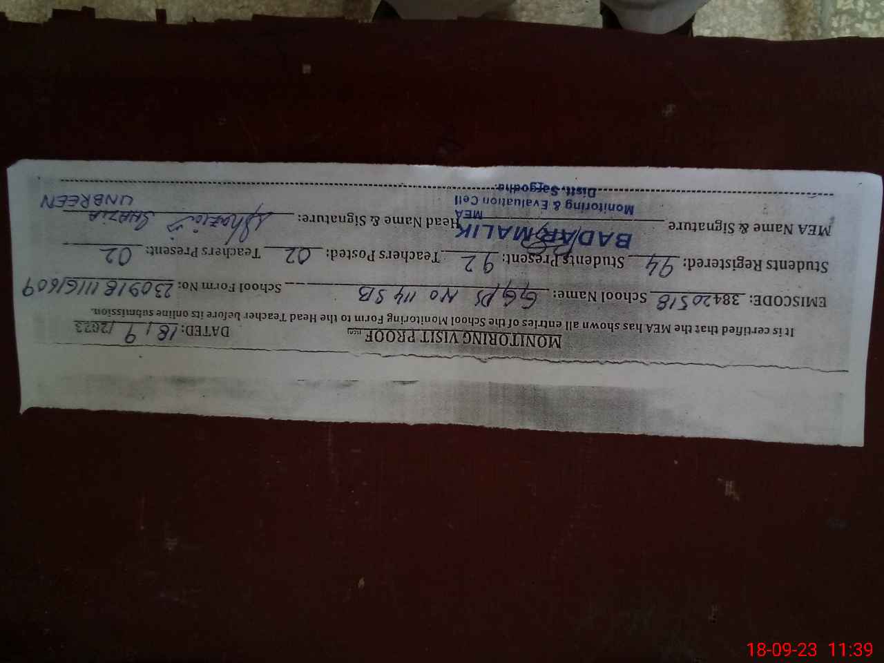 | EMIS Code: 38420518 | Name of School: GGPS CHAK NO.114 SB | |||