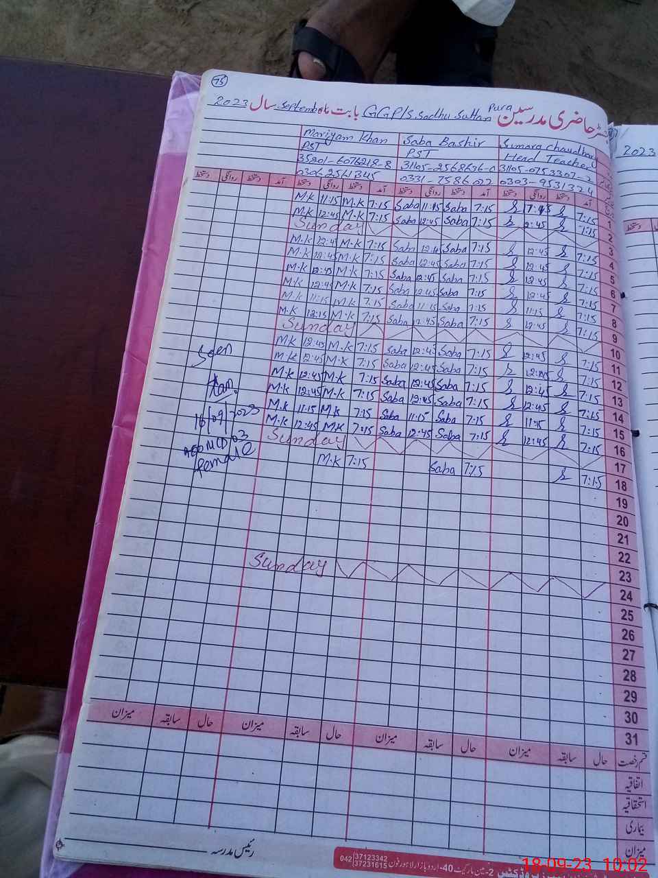| Name: Ma**** Kh**** Designation: (School Headmaster's/Headmistress's) PST Phone/Cell Number: 03**** |