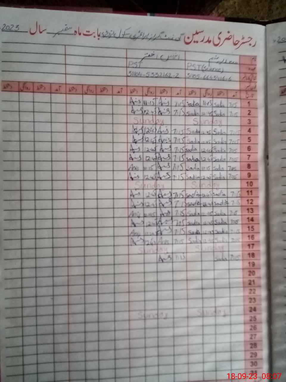 | Name: AN**** Ak**** Designation: (School Headmaster's/Headmistress's) PST Phone/Cell Number: 03**** |