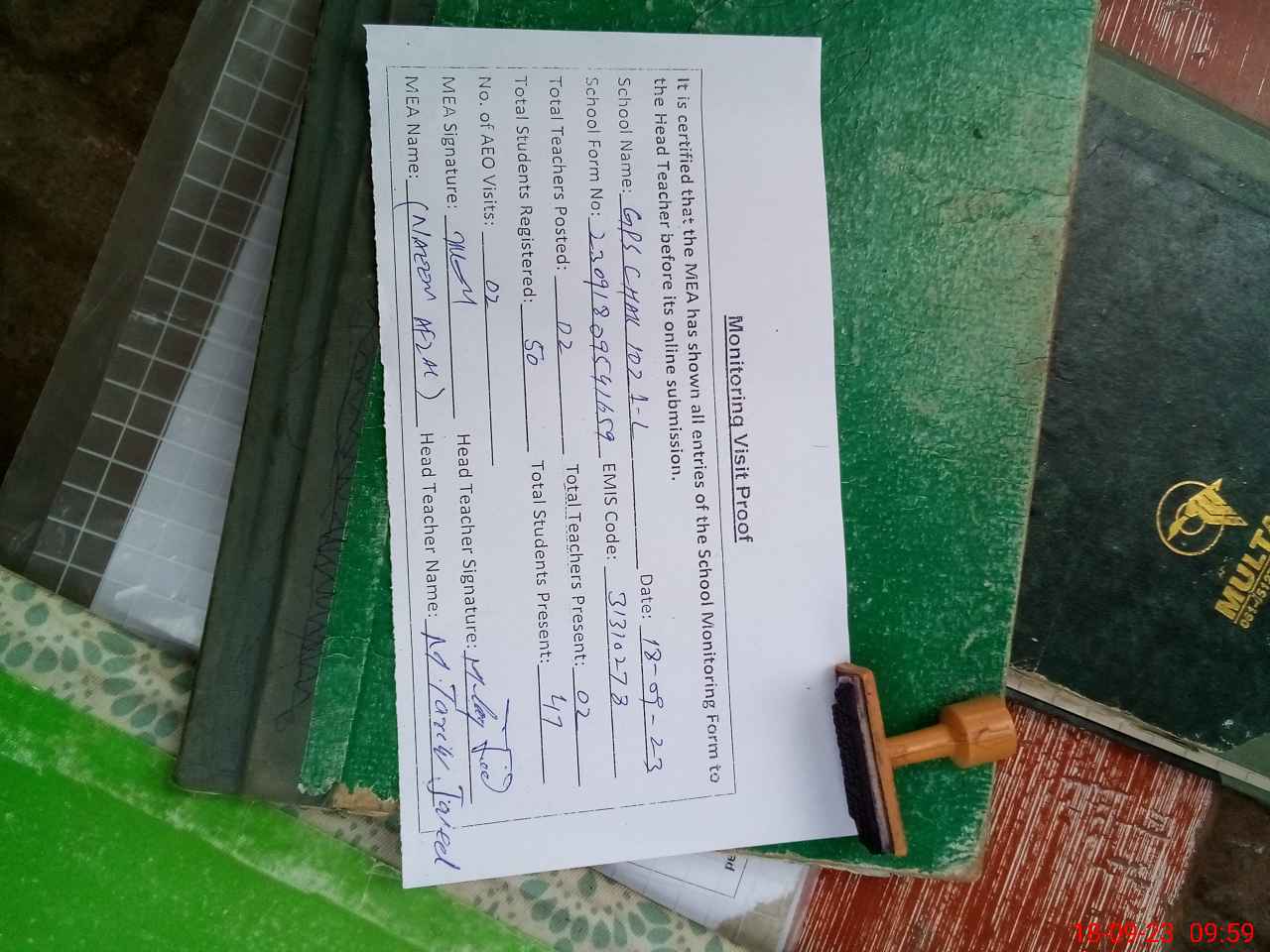 | EMIS Code: 31310278 | Name of School: GPS CHAK 102 1/L (After Noon) | |||