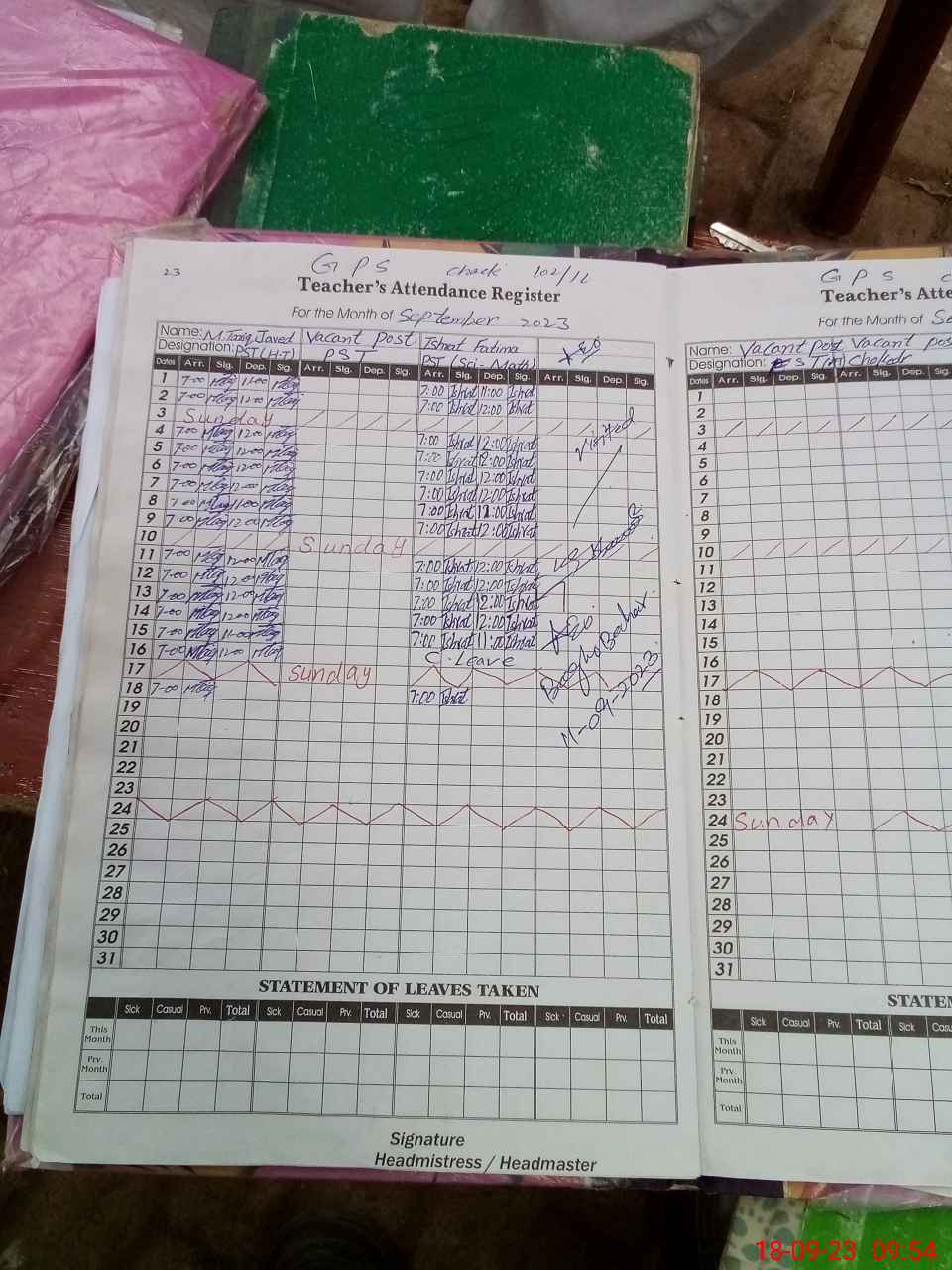 | Name: Mo**** Ta**** Ja**** Designation: (School Headmaster's/Headmistress's) PST Phone/Cell Number: 03**** |
