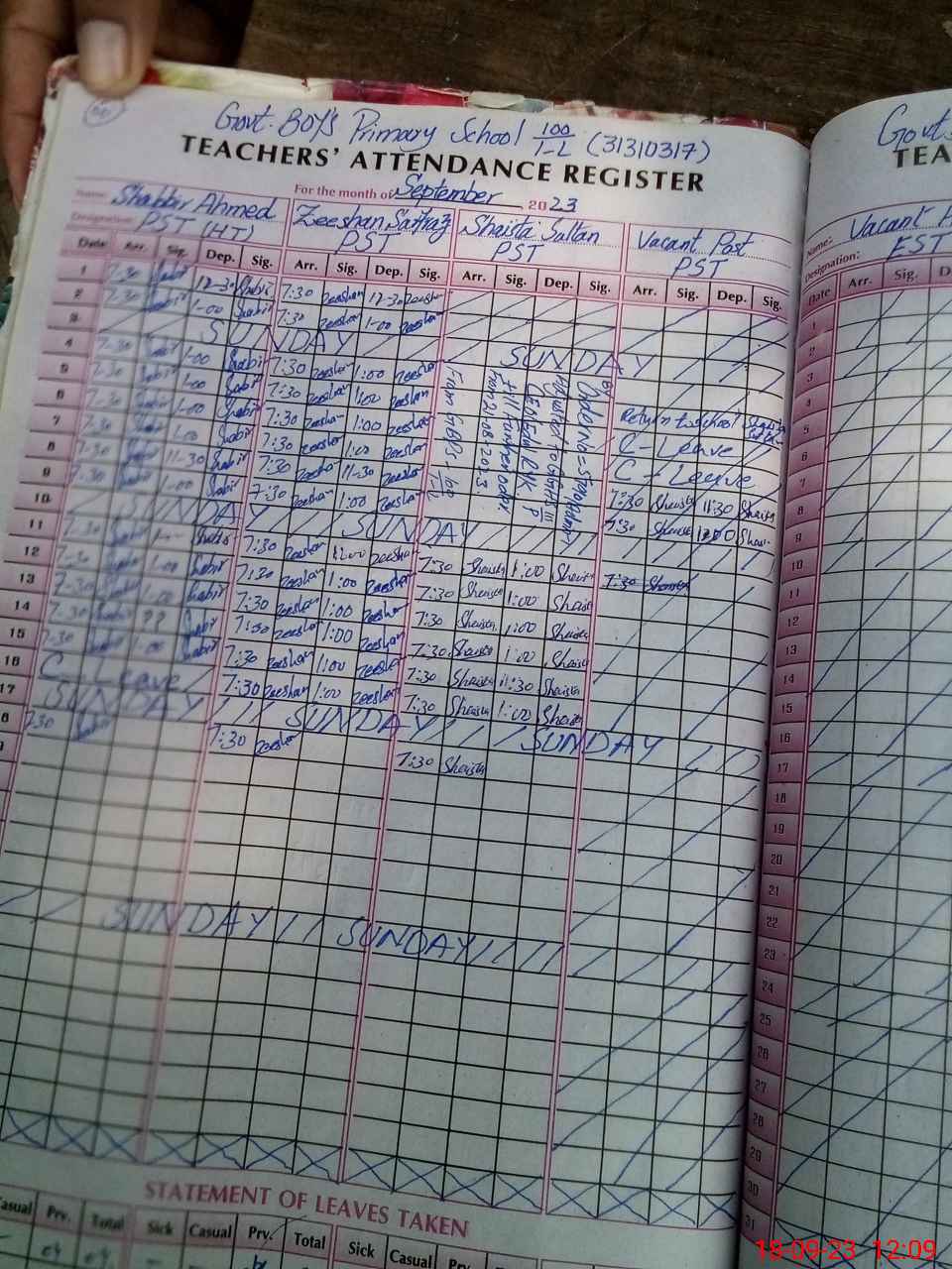 | Name: SH**** AH**** Designation: (School Headmaster's/Headmistress's) PST Phone/Cell Number: 03**** |