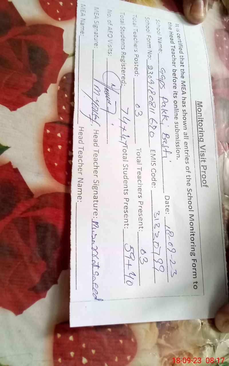 | EMIS Code: 31330799 | Name of School: GGPS PAKKI BASTI | |||