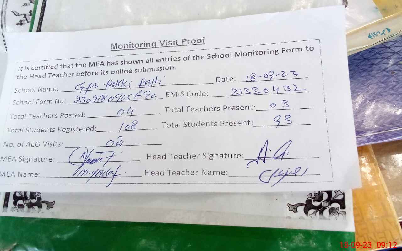 | EMIS Code: 31330432 | Name of School: GPS PAKKI BASTI | |||