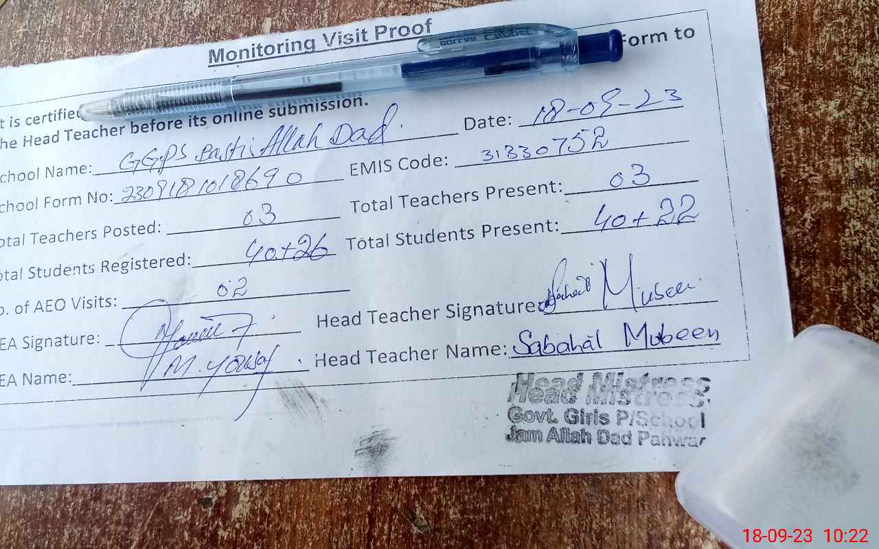 | EMIS Code: 31330752 | Name of School: GGPS BASTI JAM ALLAH DAR PANWAR | |||