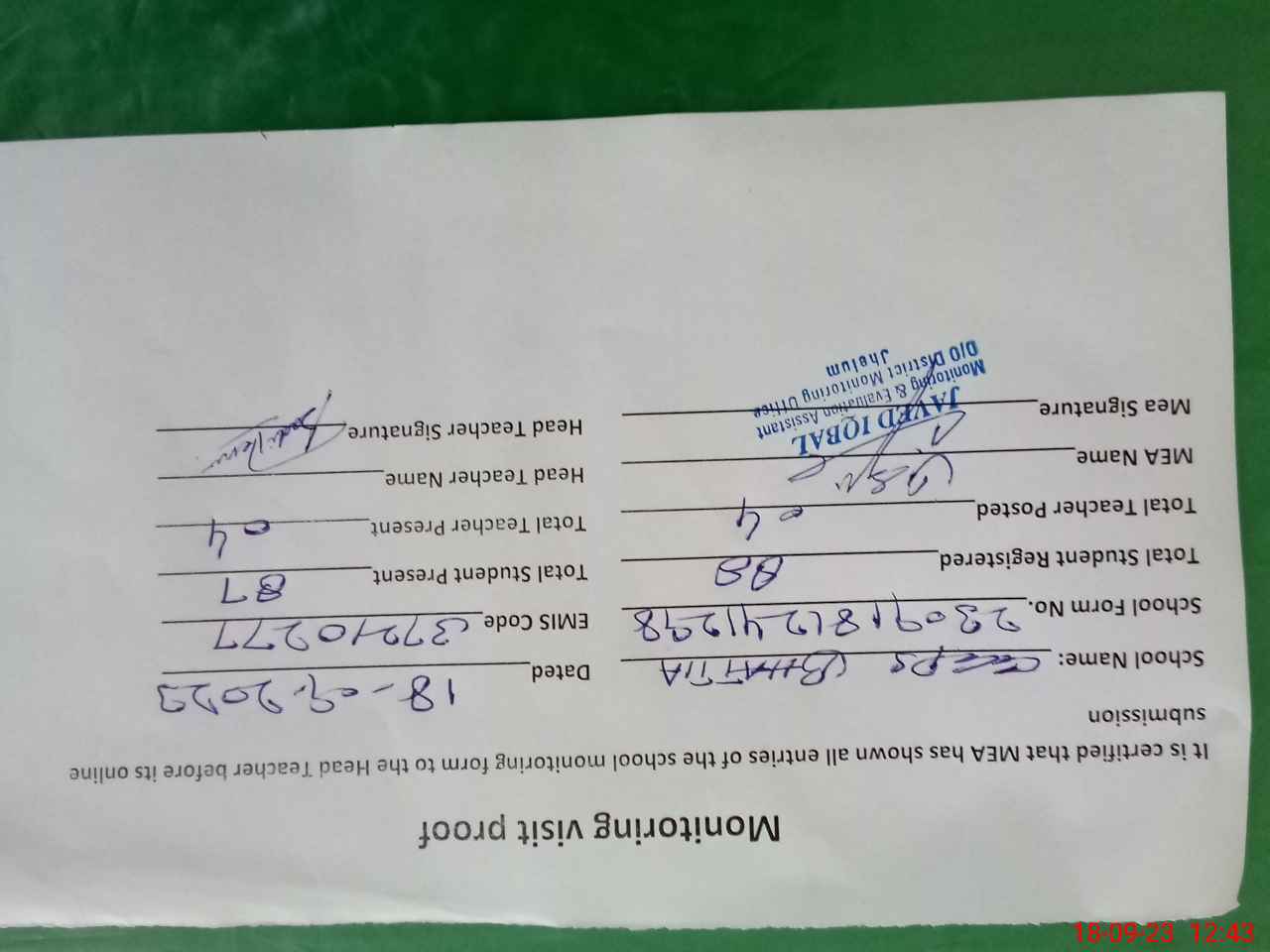 | Certified that this School was Inspected by the Undersigned MEA/DMO Today and the Information Stated Above is as Per Record. | |||||