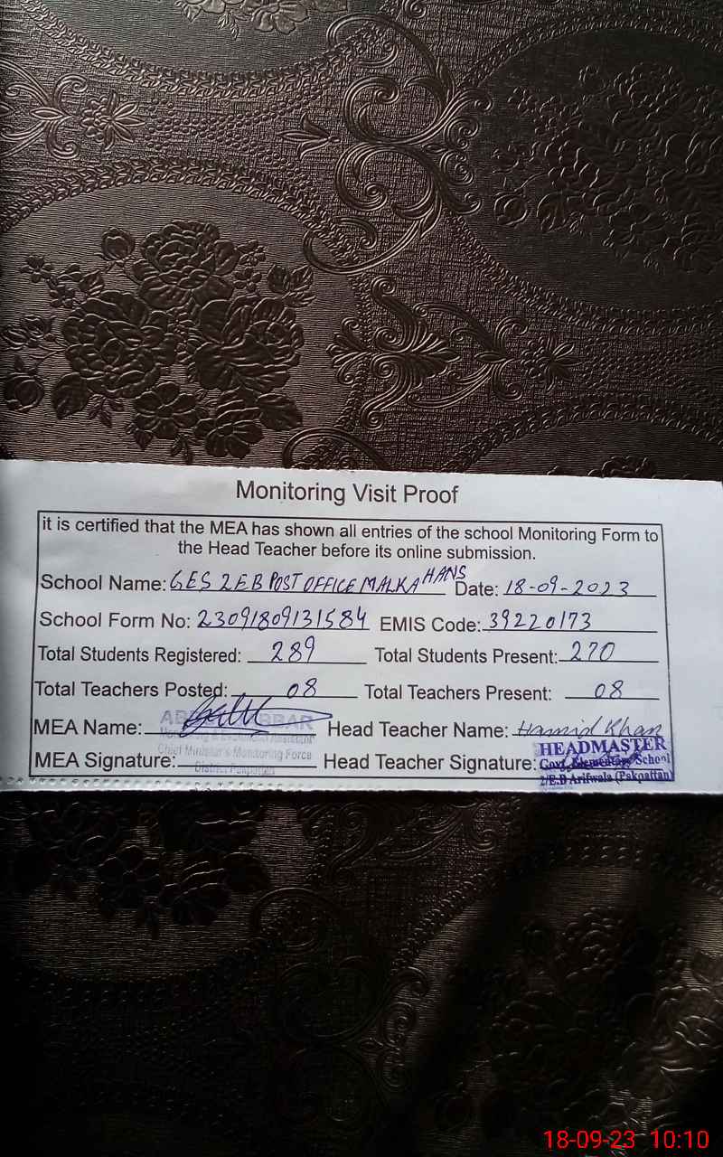 | Certified that this School was Inspected by the Undersigned MEA/DMO Today and the Information Stated Above is as Per Record. | |||||