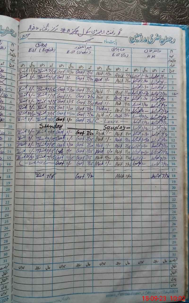 | Name: HA**** KH**** Designation: (School Headmaster's/Headmistress's) SST (GENERAL ) Phone/Cell Number: 03**** |