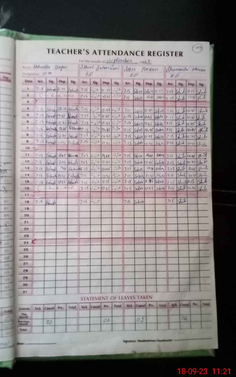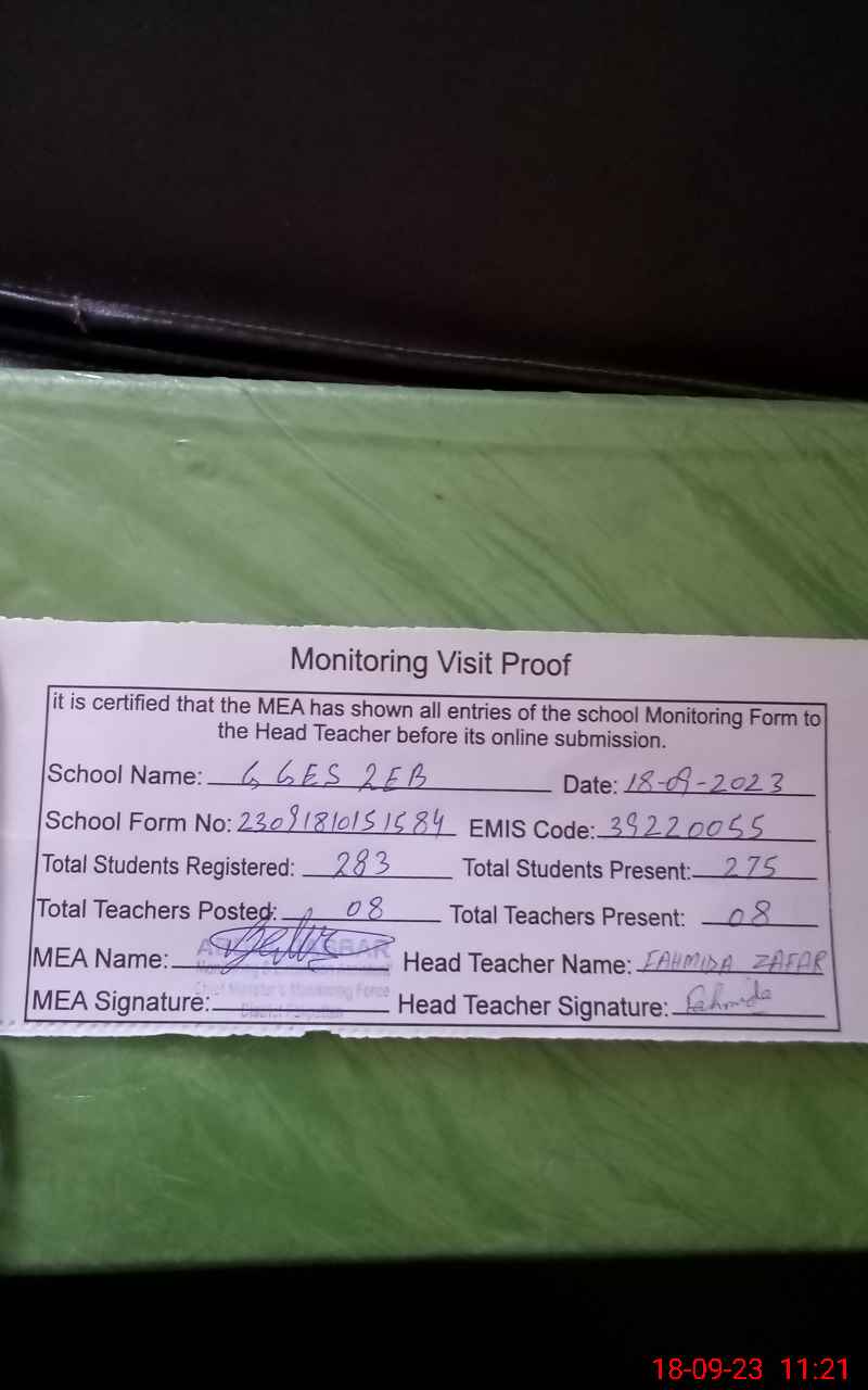 | Attendance Register | Head Teacher | MEA with School | Visit Proof |