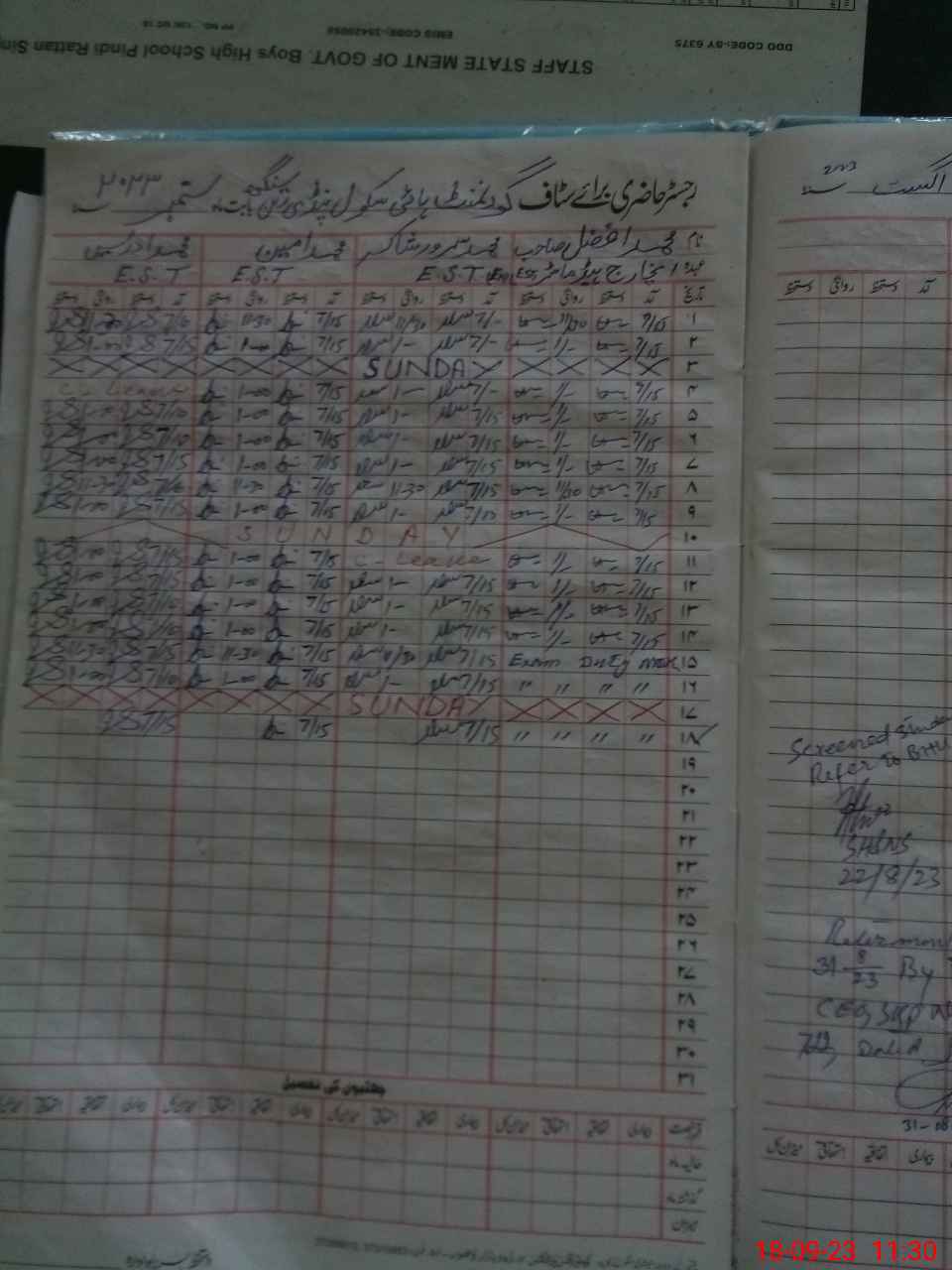 | 35**** | Mu**** Af**** | 1 | 0 | 0 | 0 | 0 | 0 | 0 | 0 | 0 | 0 | Exam Duty | |