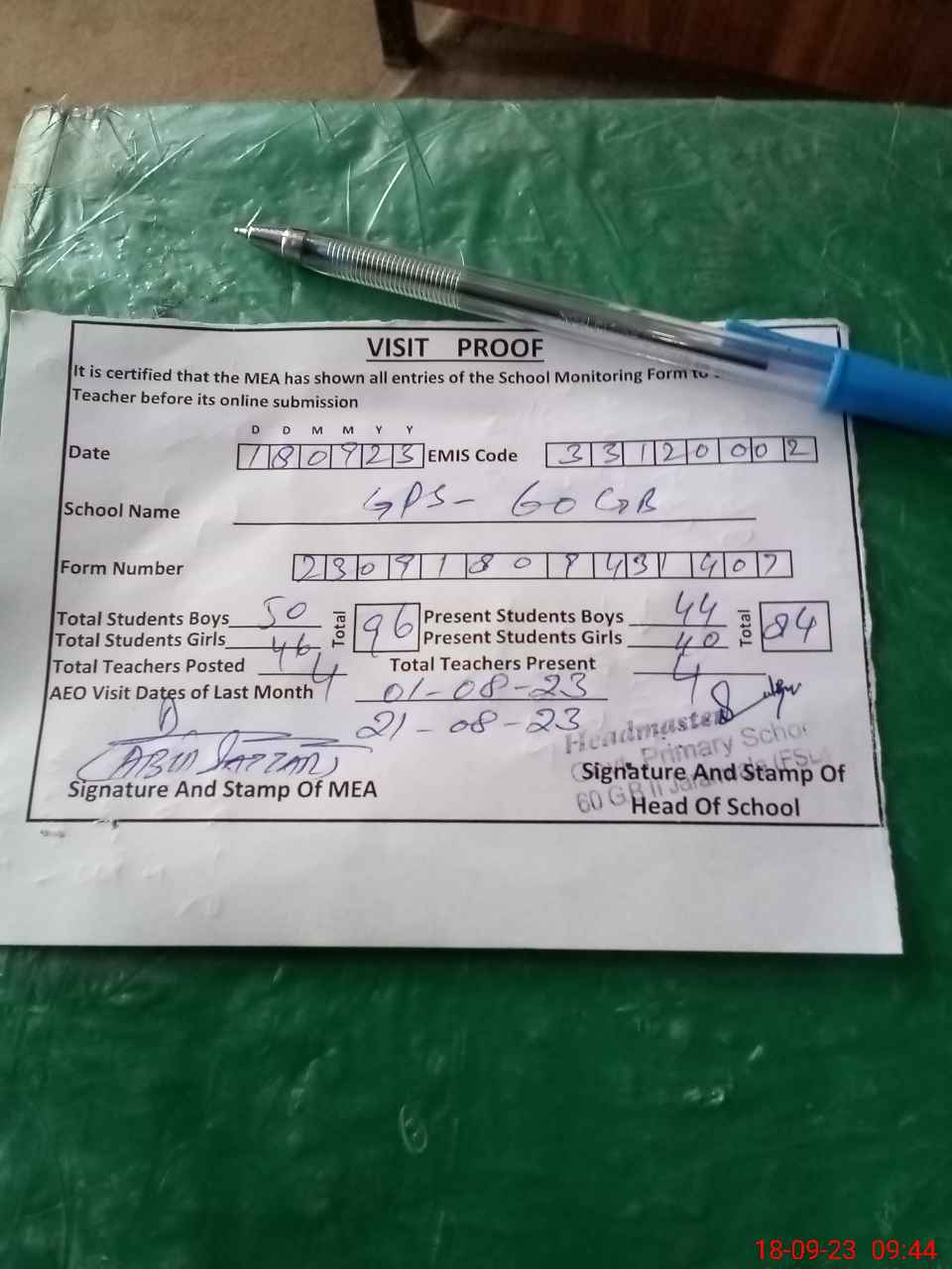 | EMIS Code: 33120002 | Name of School: GPS 60 GB JARANWALA | |||