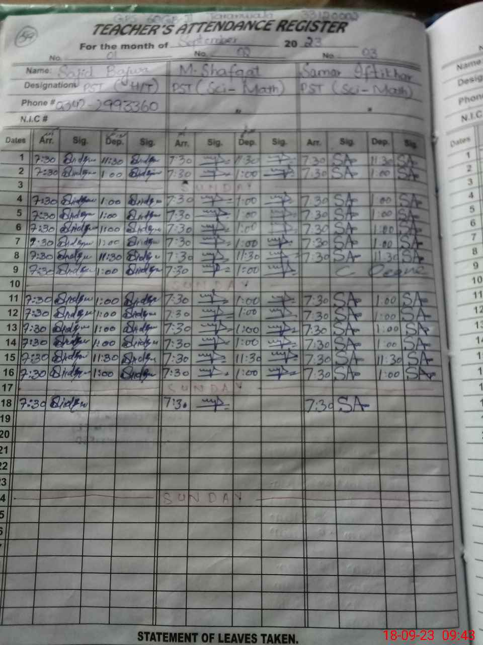 | Name: SA**** RA**** BA**** Designation: (School Headmaster's/Headmistress's) PST Phone/Cell Number: 03**** |