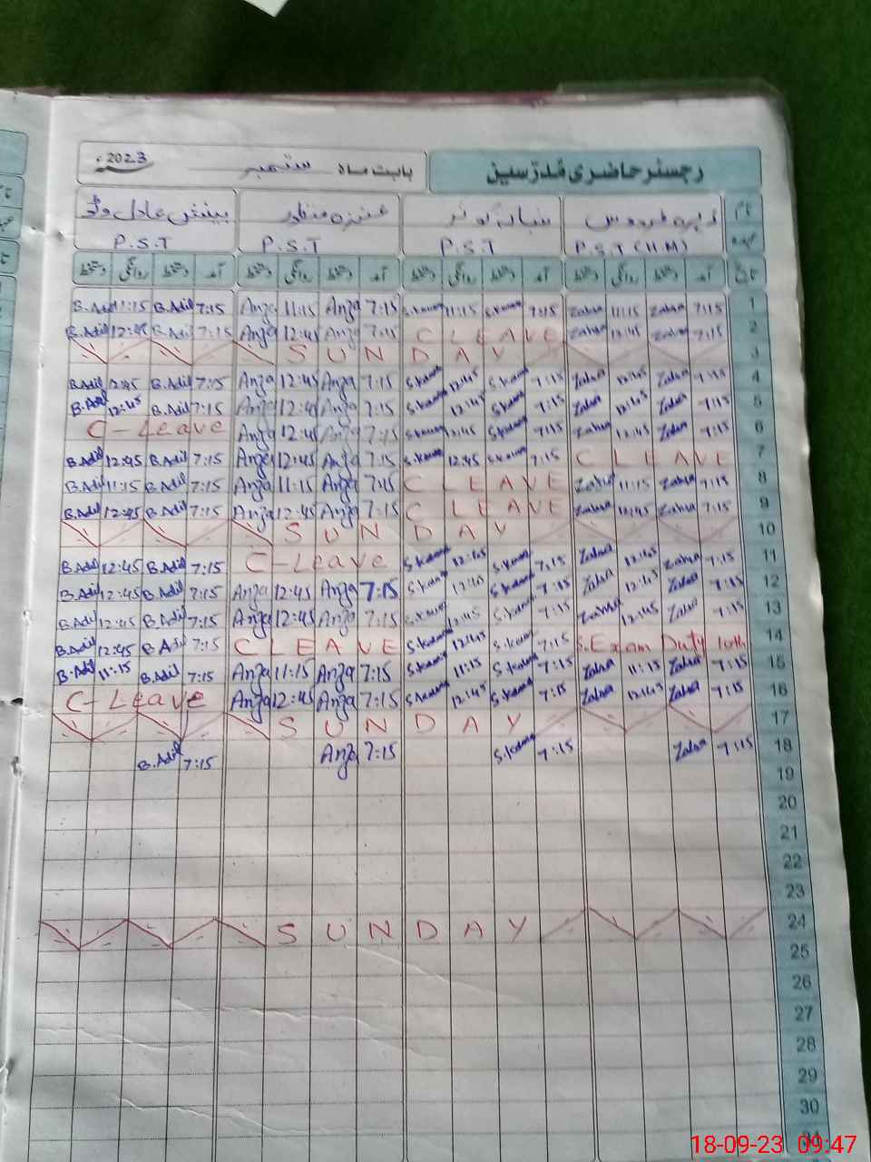| Leave | Duty | Absent | Maternity | Medical | Ex- Pak |