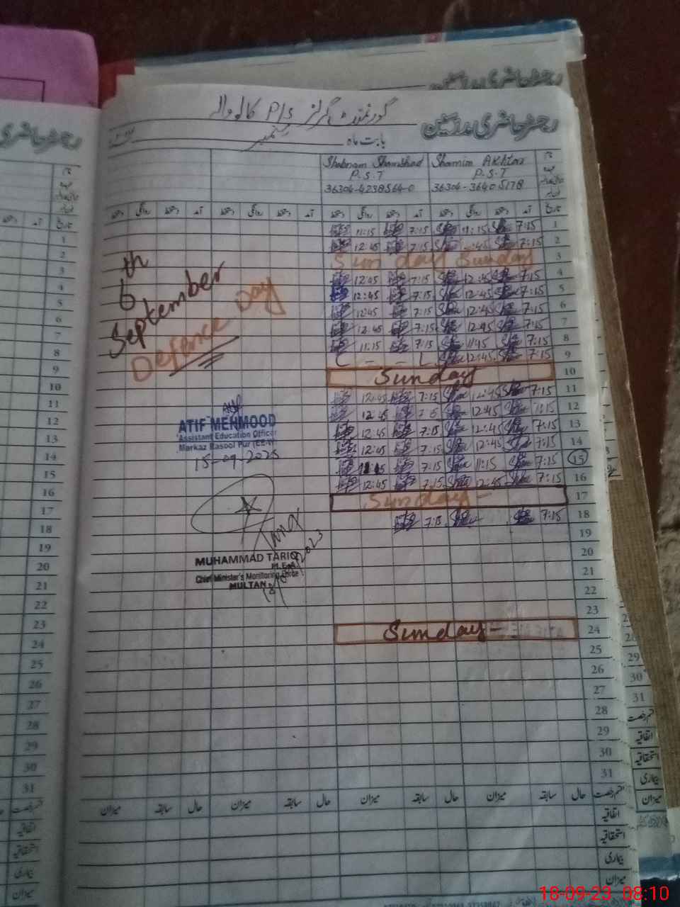 | Name: Sh**** Ak**** Designation: (School Headmaster's/Headmistress's) Pst Phone/Cell Number: 03**** |