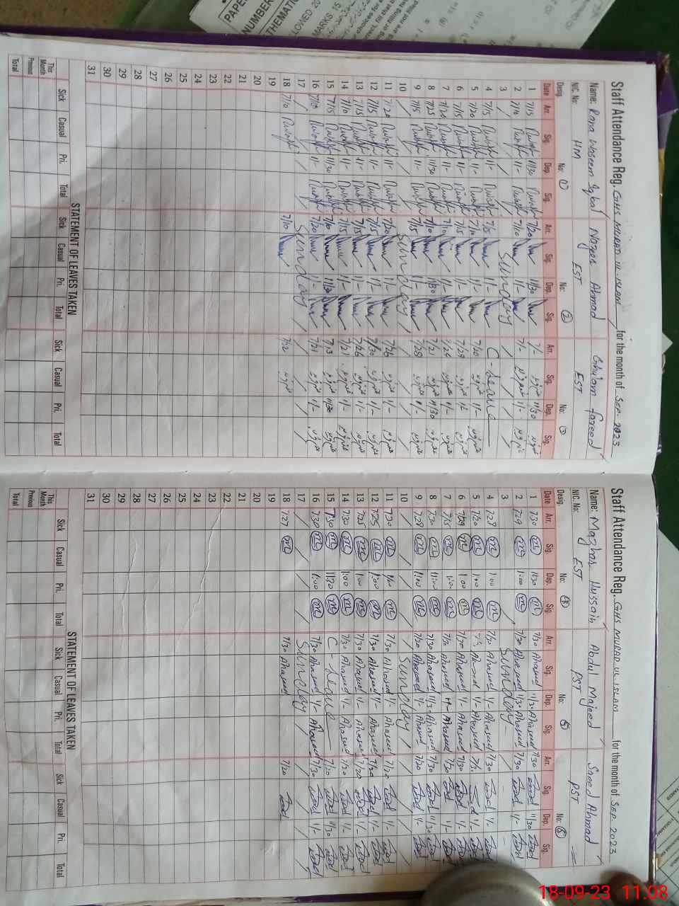 | Name: RA**** WA**** IQ**** Designation: (School Headmaster's/Headmistress's) S.S.T.(General) Phone/Cell Number: 03**** |