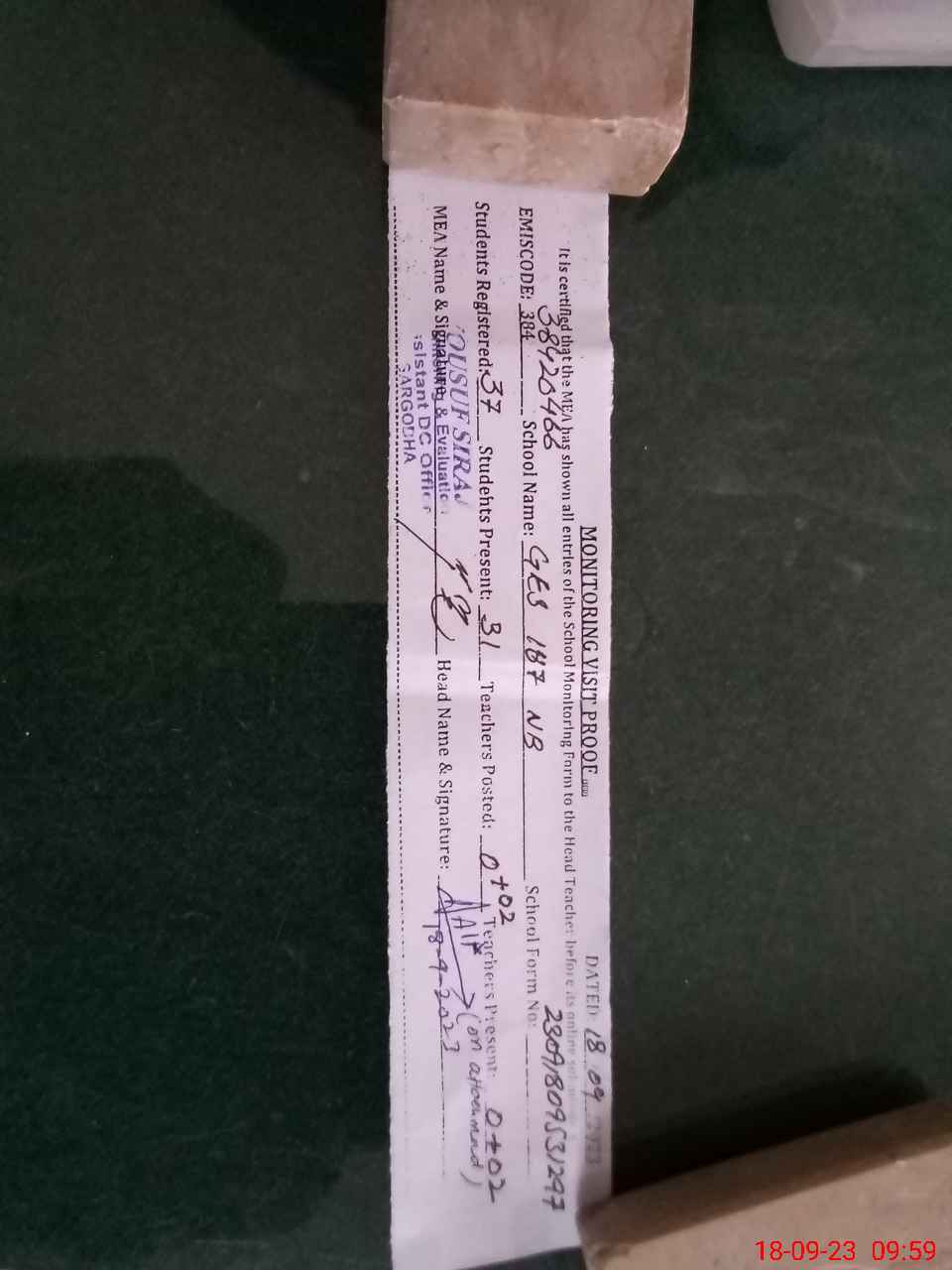 | EMIS Code: 38420466 | Name of School: GES CHAK NO. 187 NB | |||