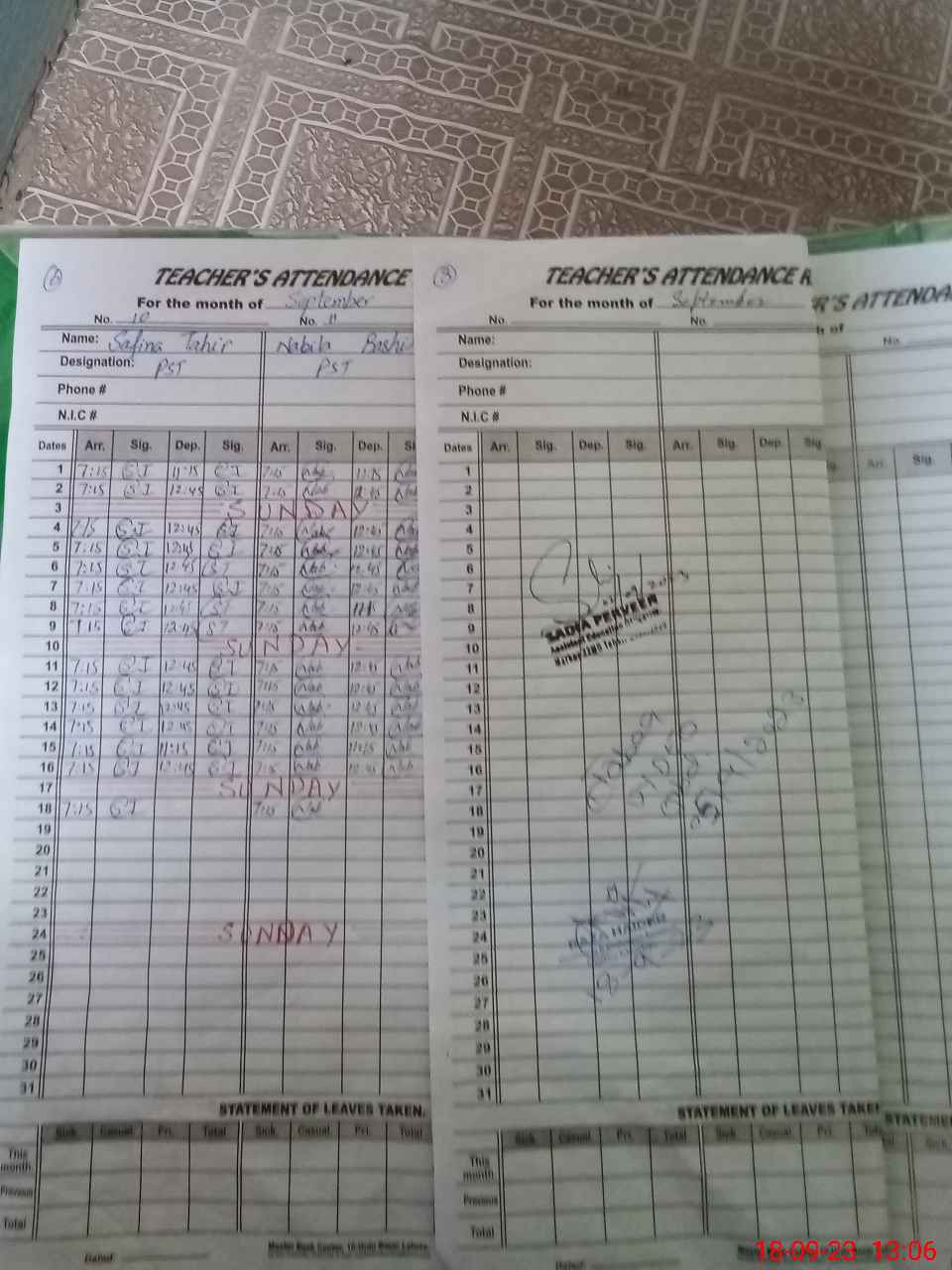| Name: Sa**** Pe**** Designation: (School Headmaster's/Headmistress's) SSE_Bio Phone/Cell Number: 03**** |