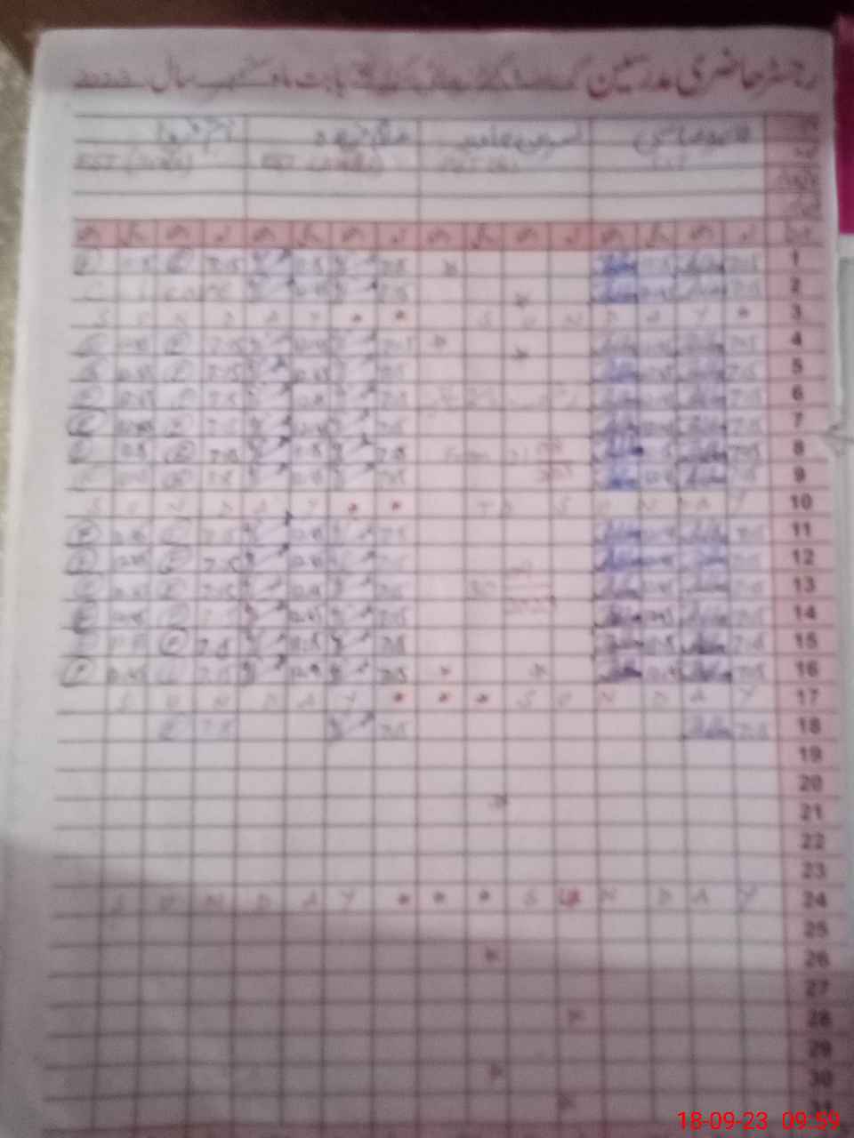 | No. of Students Present - Female | 0 | 0 | 23 | 21 | 26 | 26 | 39 | 37 | 41 | 39 | 36 | 33 | 16 | 337 | ||