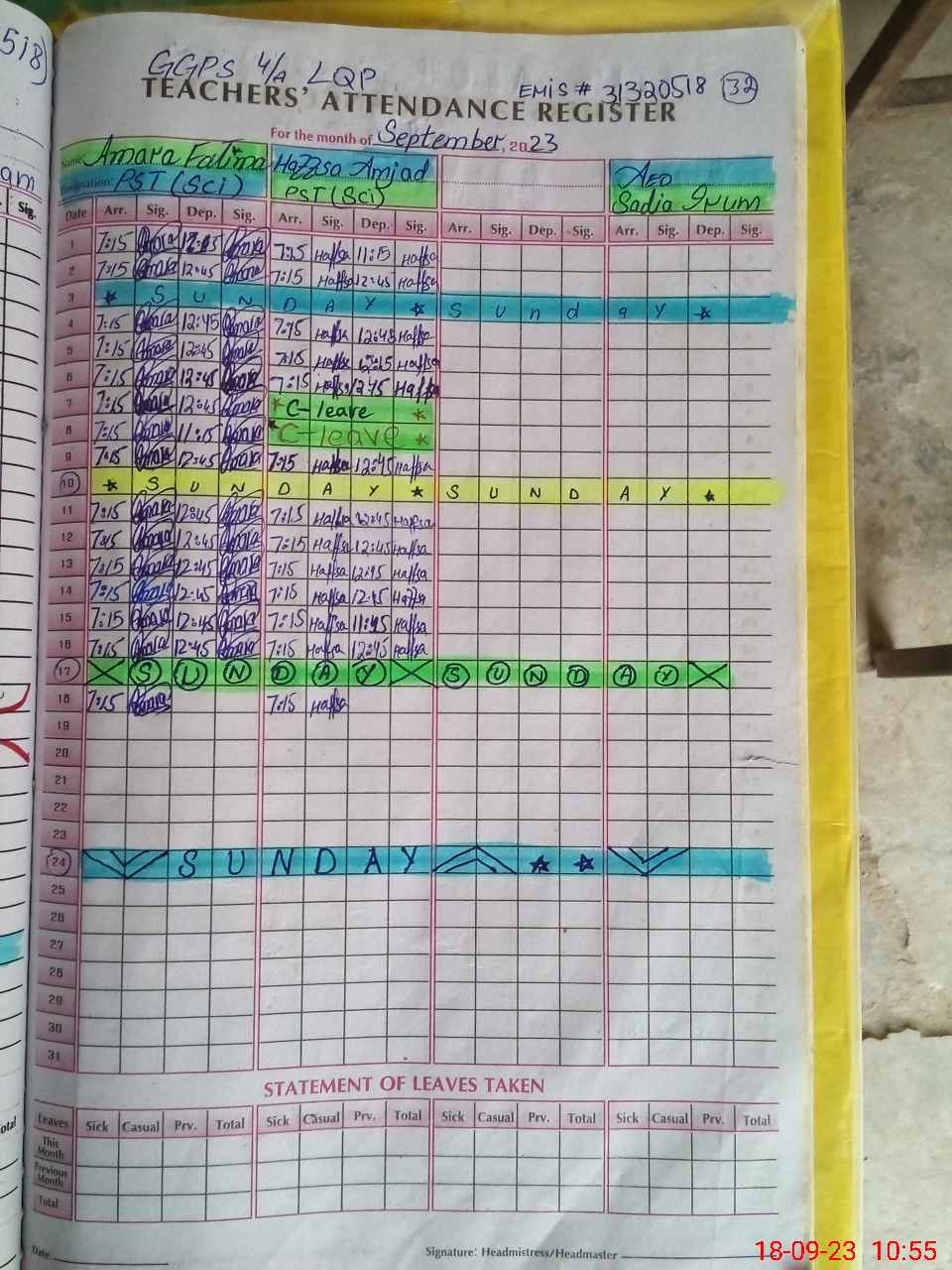 | Name: Am**** Fa**** Designation: (School Headmaster's/Headmistress's) PST Phone/Cell Number: 03**** |