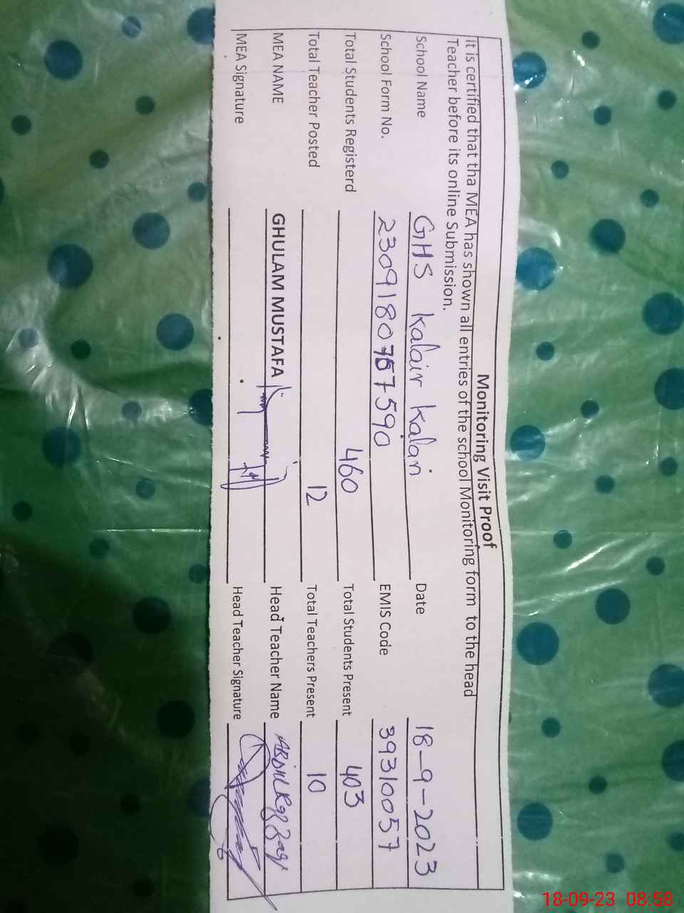 | EMIS Code: 39310057 | Name of School: GHS KALAIR KALAN | |||