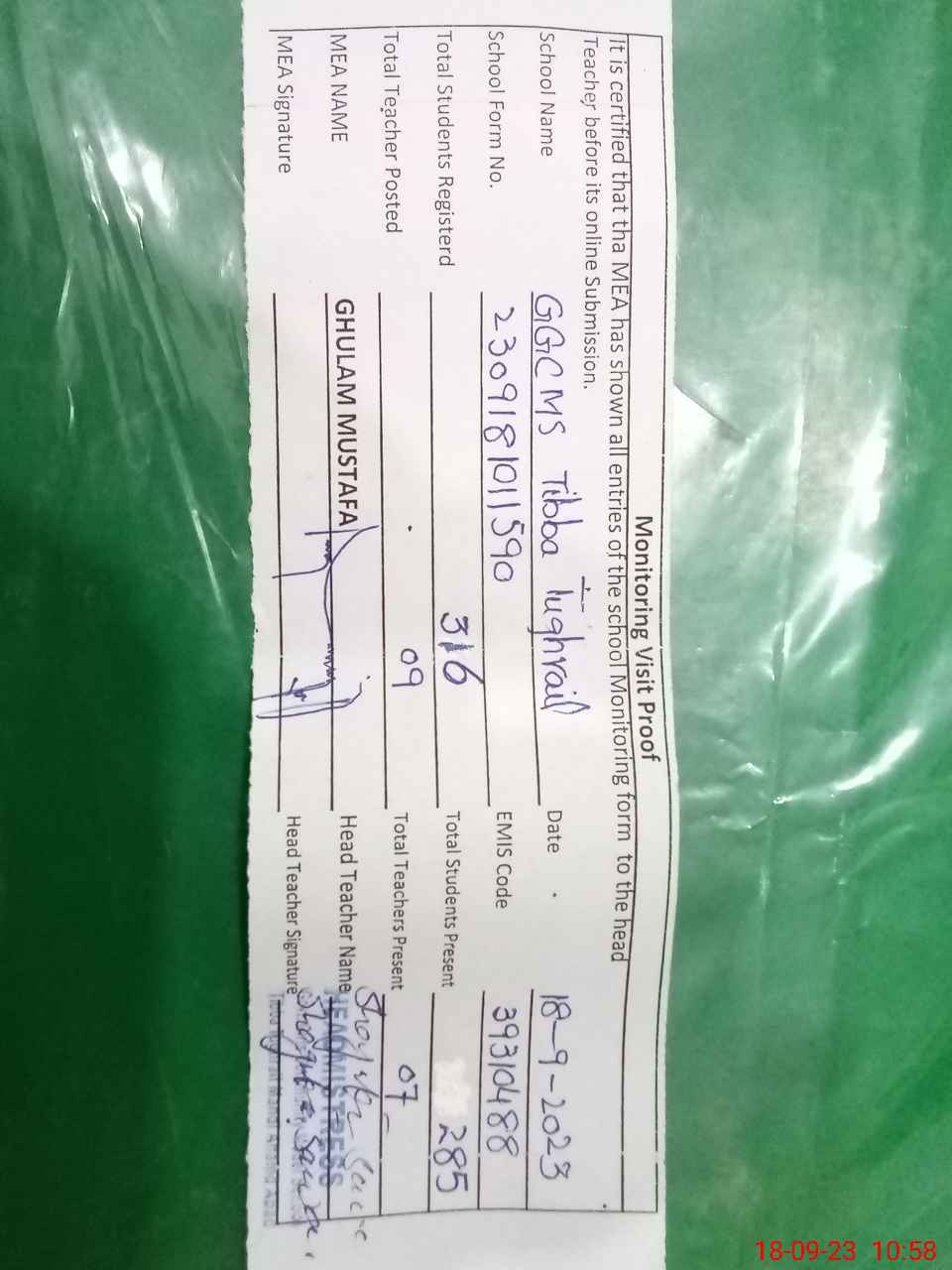 | EMIS Code: 39310488 | Name of School: GGCMS TIBBA TUGHRAIL | |||