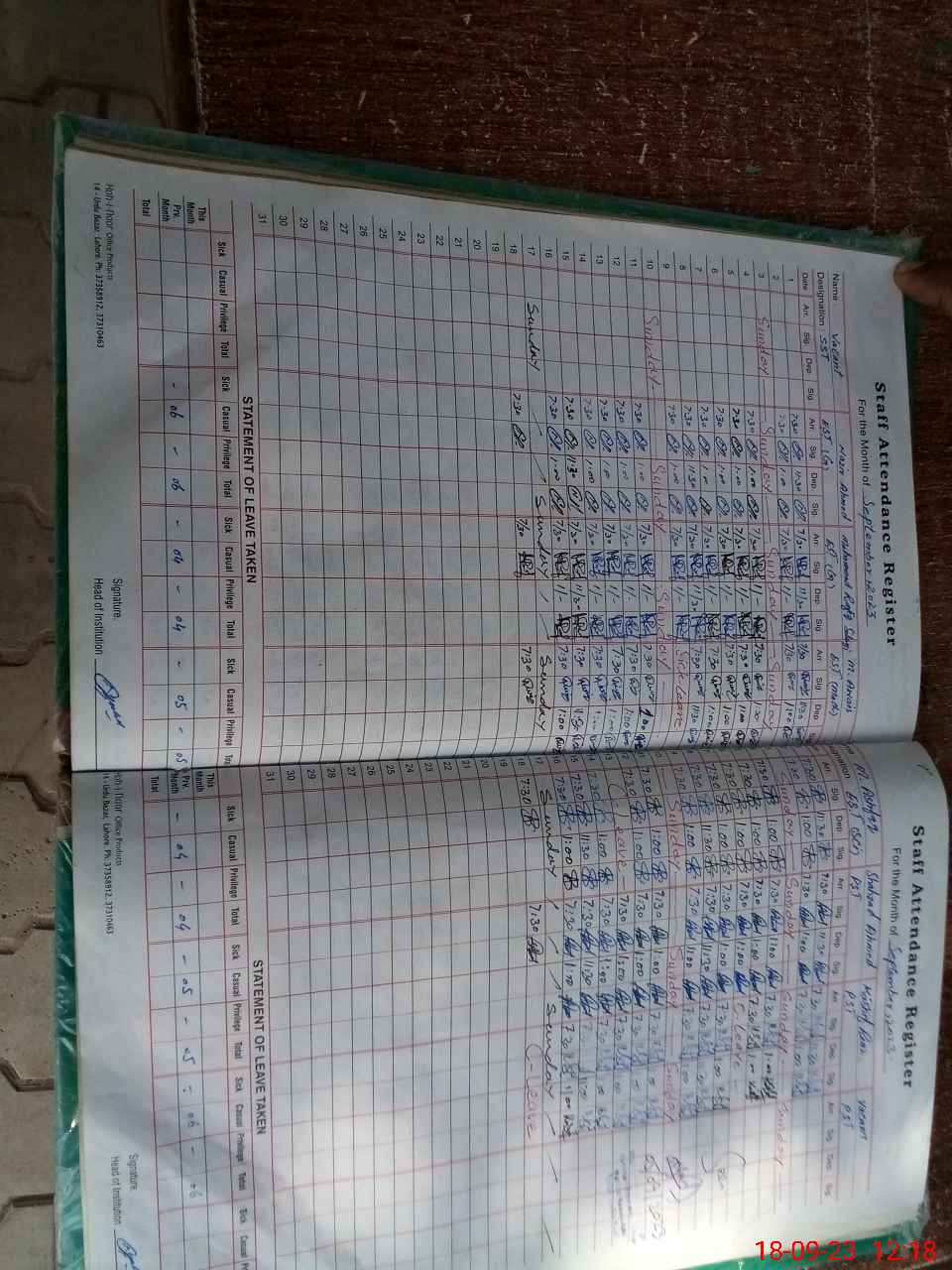 | Leave | Duty | Absent | Maternity | Medical | Ex- Pak |