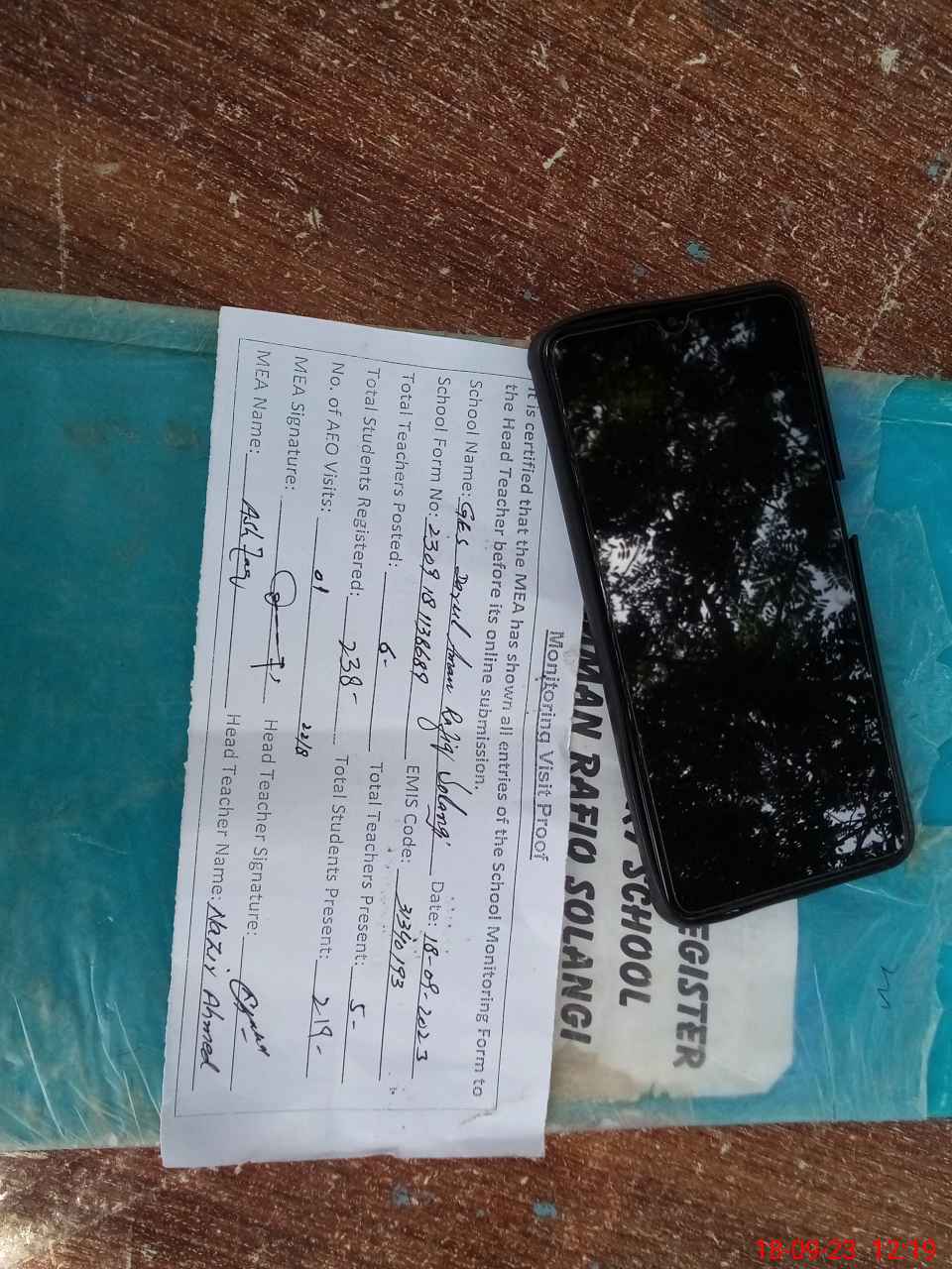 | Attendance Register | Head Teacher | MEA with School | Visit Proof |