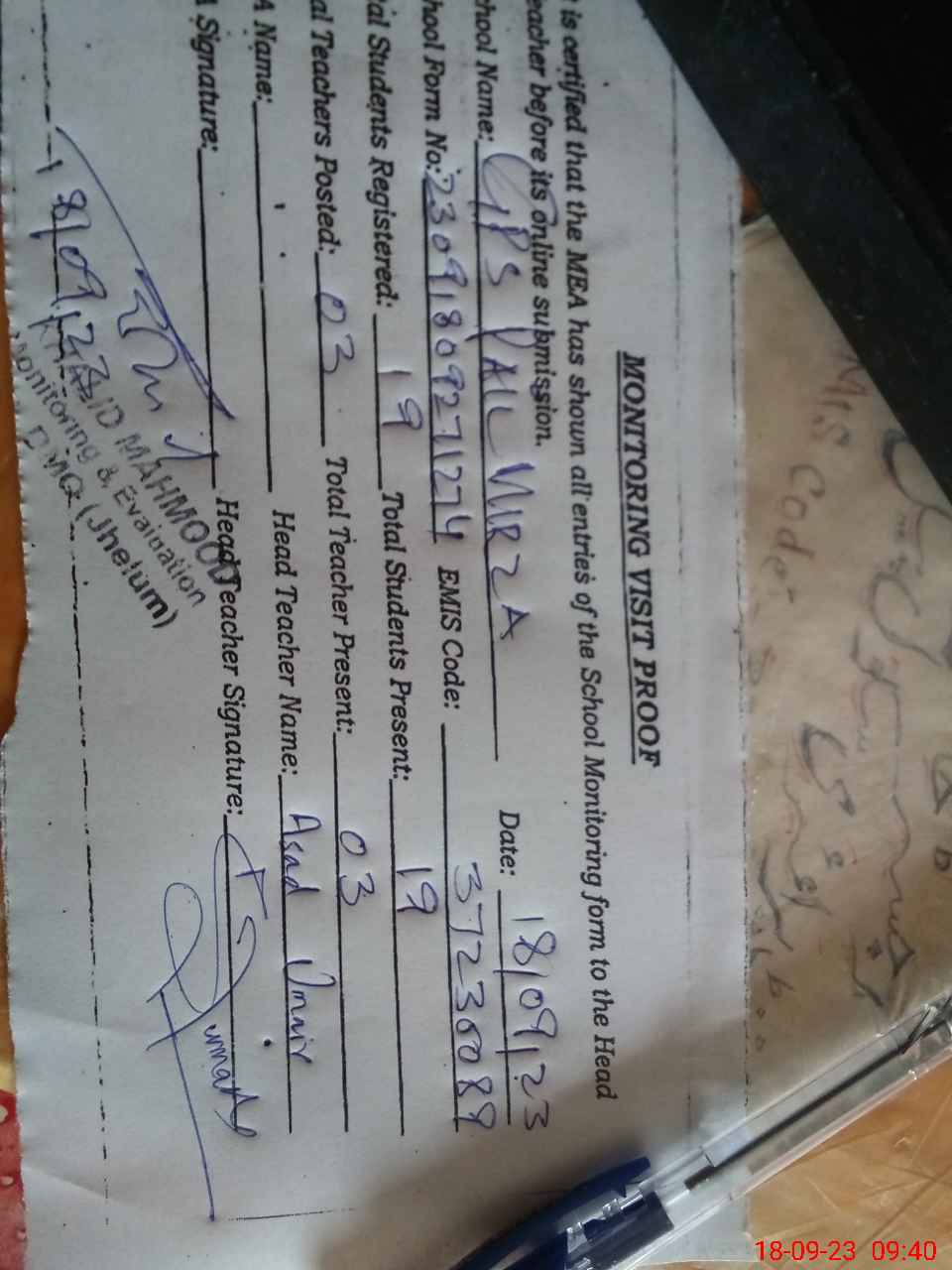 | EMIS Code: 37230089 | Name of School: GPS PAIL MIRZA | |||