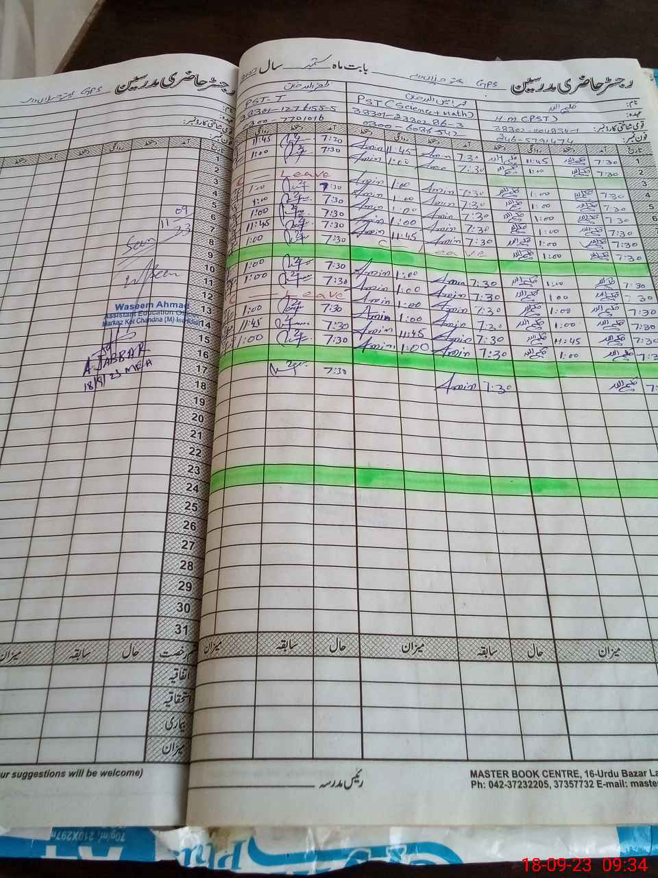 | CNIC | Full Name | Designation | R/C | Absence During Last Calender Month |