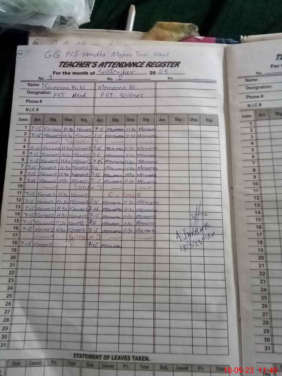 | Monitoring Date: 18-09-2023 | Start Time: 18-09-2023 11:26 AM | End Time: 18-09-2023 11:54 AM | Name of MEA: AB**** JA**** | |