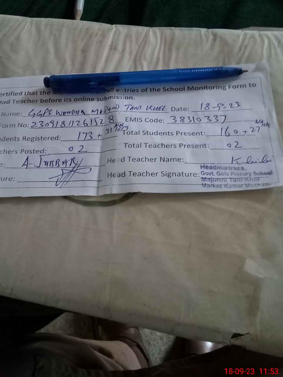 | EMIS Code: 38310337 | Name of School: GGPS WANDHA MANJI TANI KHEL | |||