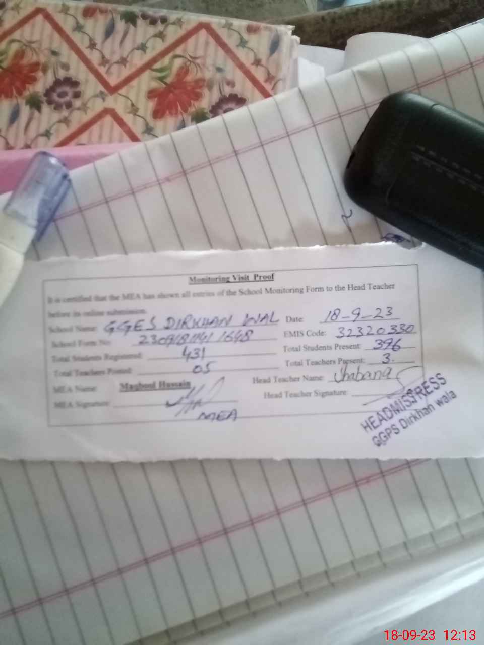 | EMIS Code: 32320330 | Name of School: GGES DIRKHAN WALA | |||