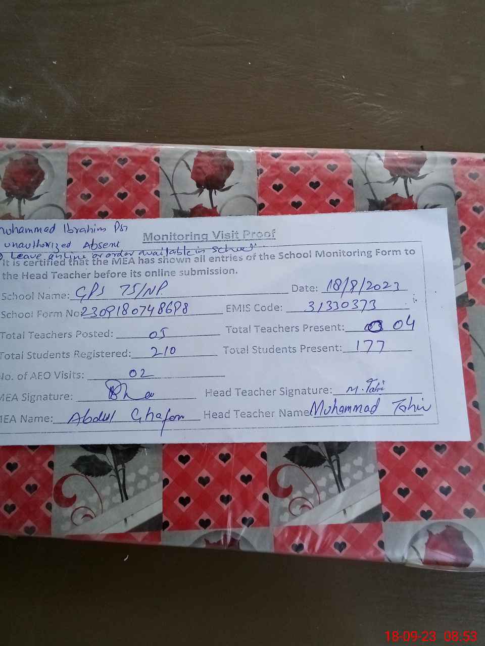 | EMIS Code: 31330373 | Name of School: GPS CHAK 75/NP | |||