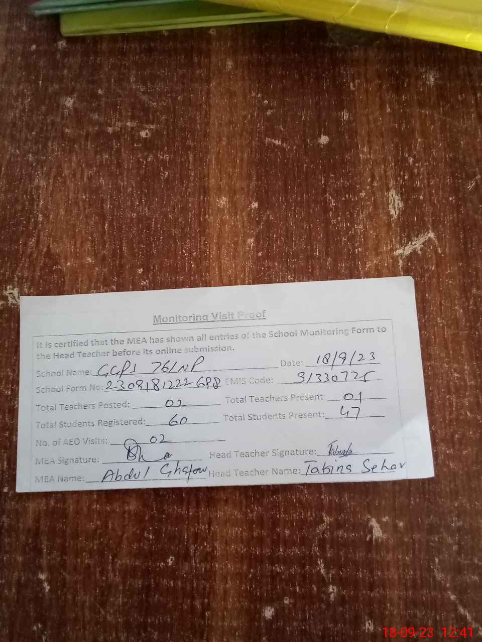 | EMIS Code: 31330725 | Name of School: GGPS CHAK NO.76/NP | |||