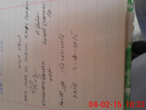 | Monitoring Date: 04-02-2015 | Start Time: 04-02-2015 09:56 AM | End Time: 04-02-2015 10:34 AM | Name of MEA: Mu**** Ra**** BN**** 37 | |