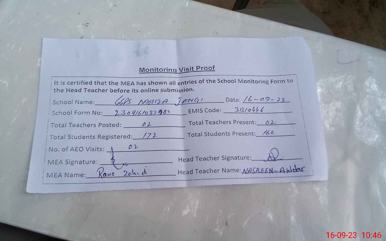 | EMIS Code: 31310446 | Name of School: GGPS MOZA JAHANGI | |||