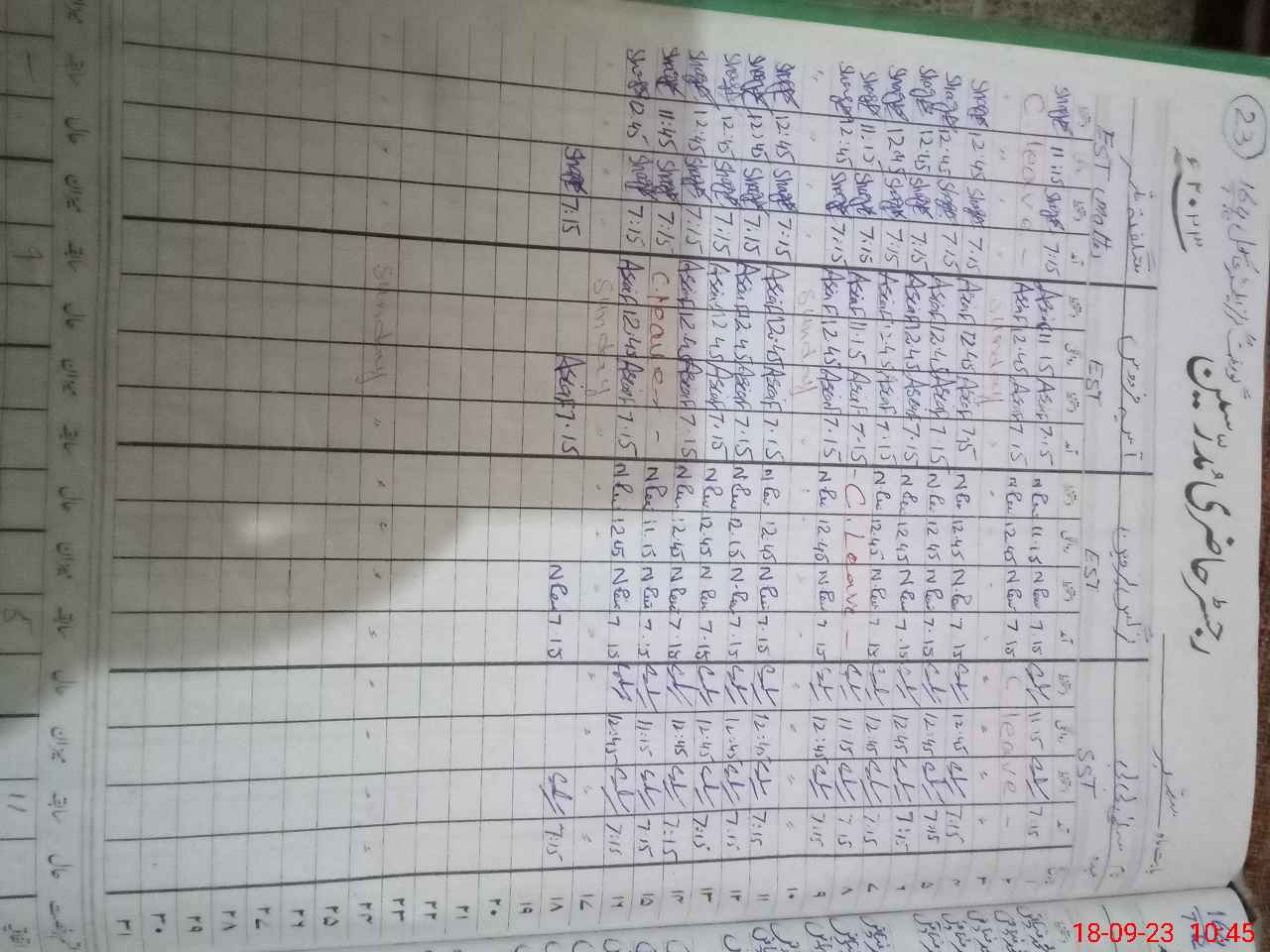 | CNIC | Full Name | Designation | R/C | Absence During Last Calender Month |