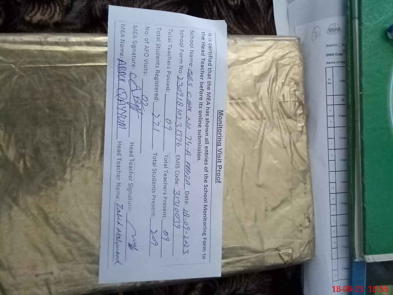 | EMIS Code: 31310039 | Name of School: GES CHAK NO 74/A FEROZA | |||