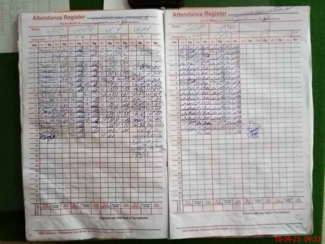 | CNIC | Full Name | Designation | R/C | Absence During Last Calender Month |