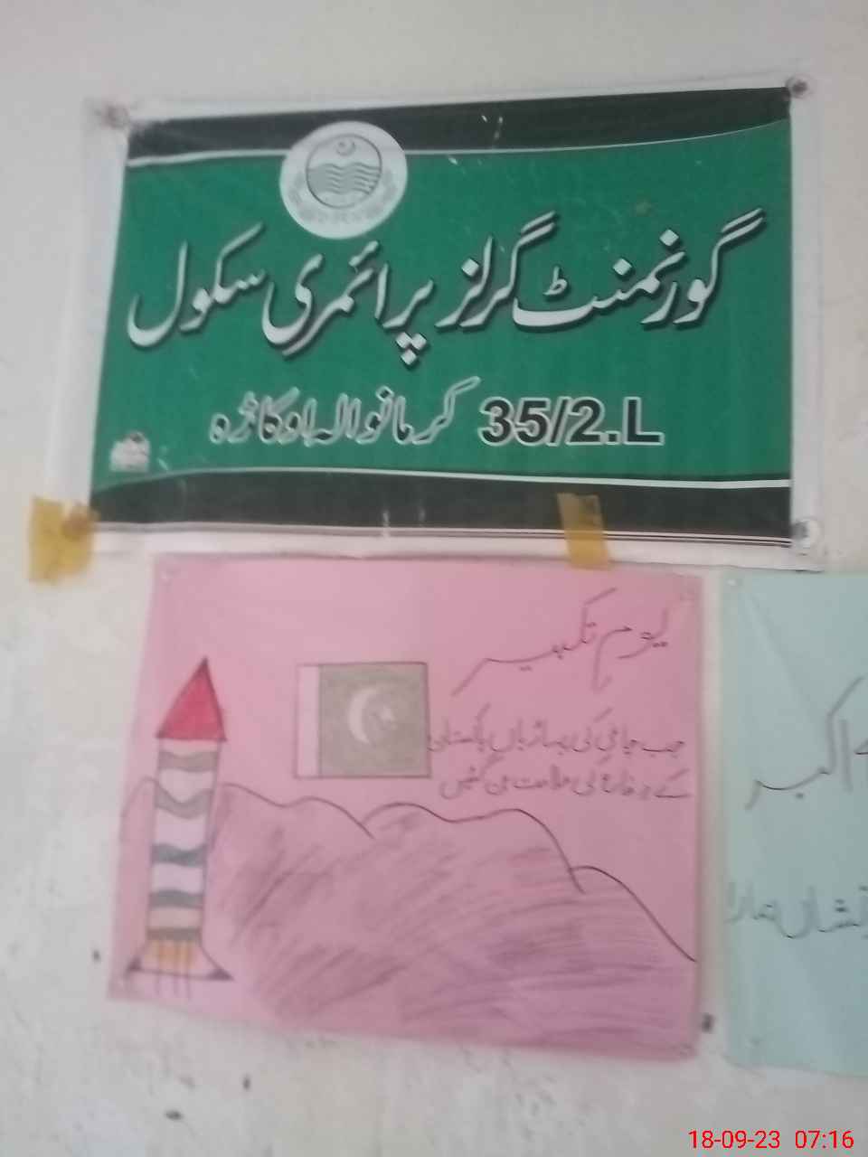 | District: OKARA | Tehsil: OKARA | Markaz: KARMAN WALA - FEMALE | Level: Middle | |