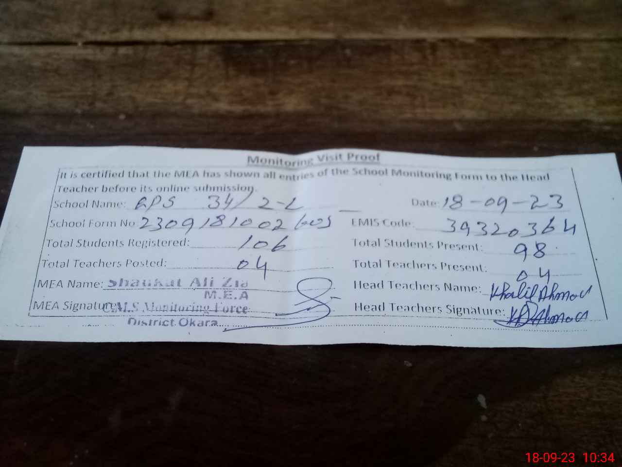 | EMIS Code: 39320364 | Name of School: GPS CHAK 34/2-L | |||