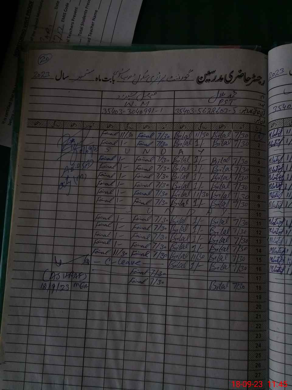 | Name: AB**** RA**** Designation: (School Headmaster's/Headmistress's) PST Phone/Cell Number: 03**** |