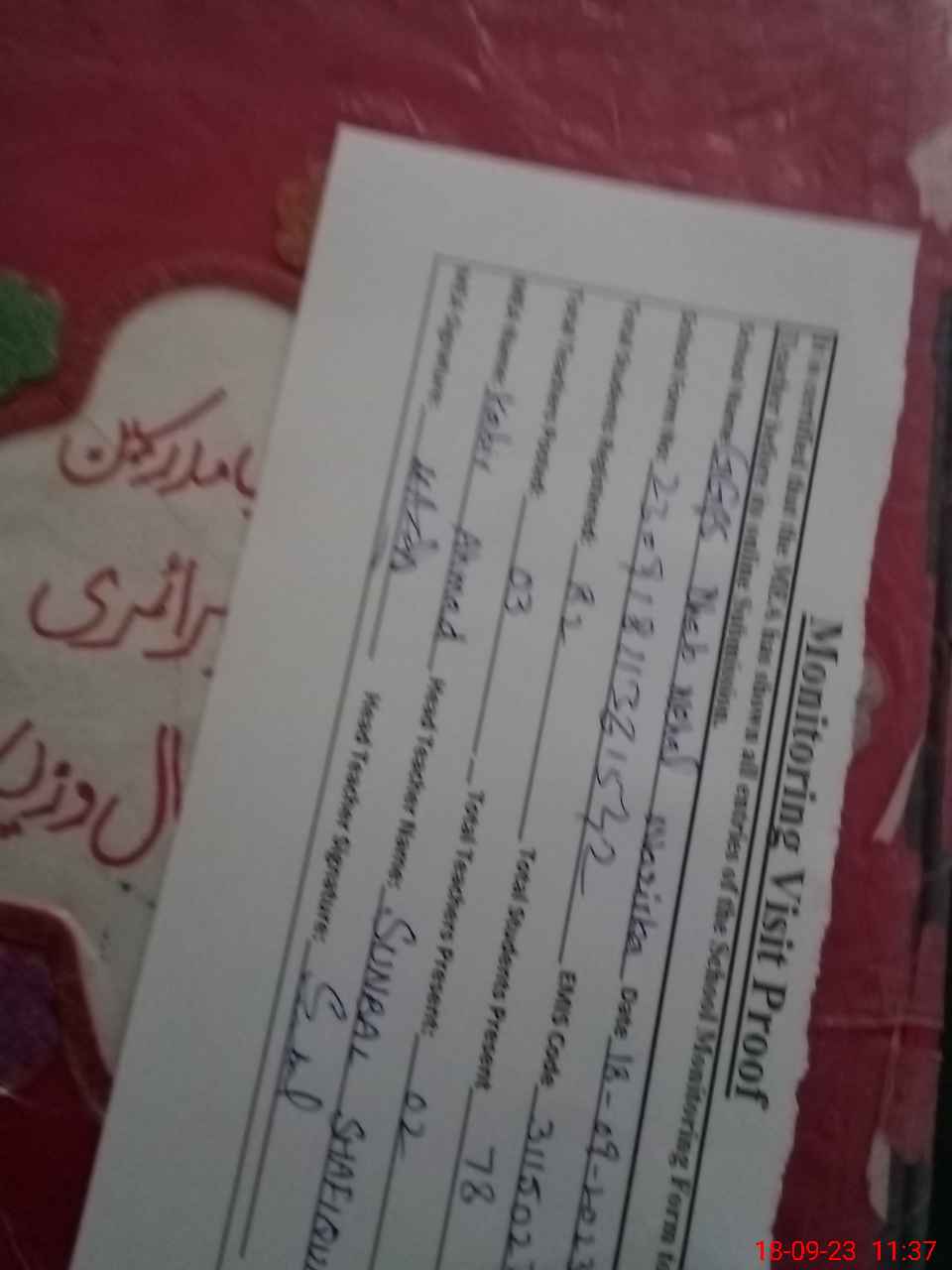| EMIS Code: 31150276 | Name of School: GGPS DHAB NEHAL WAZIRKA | |||