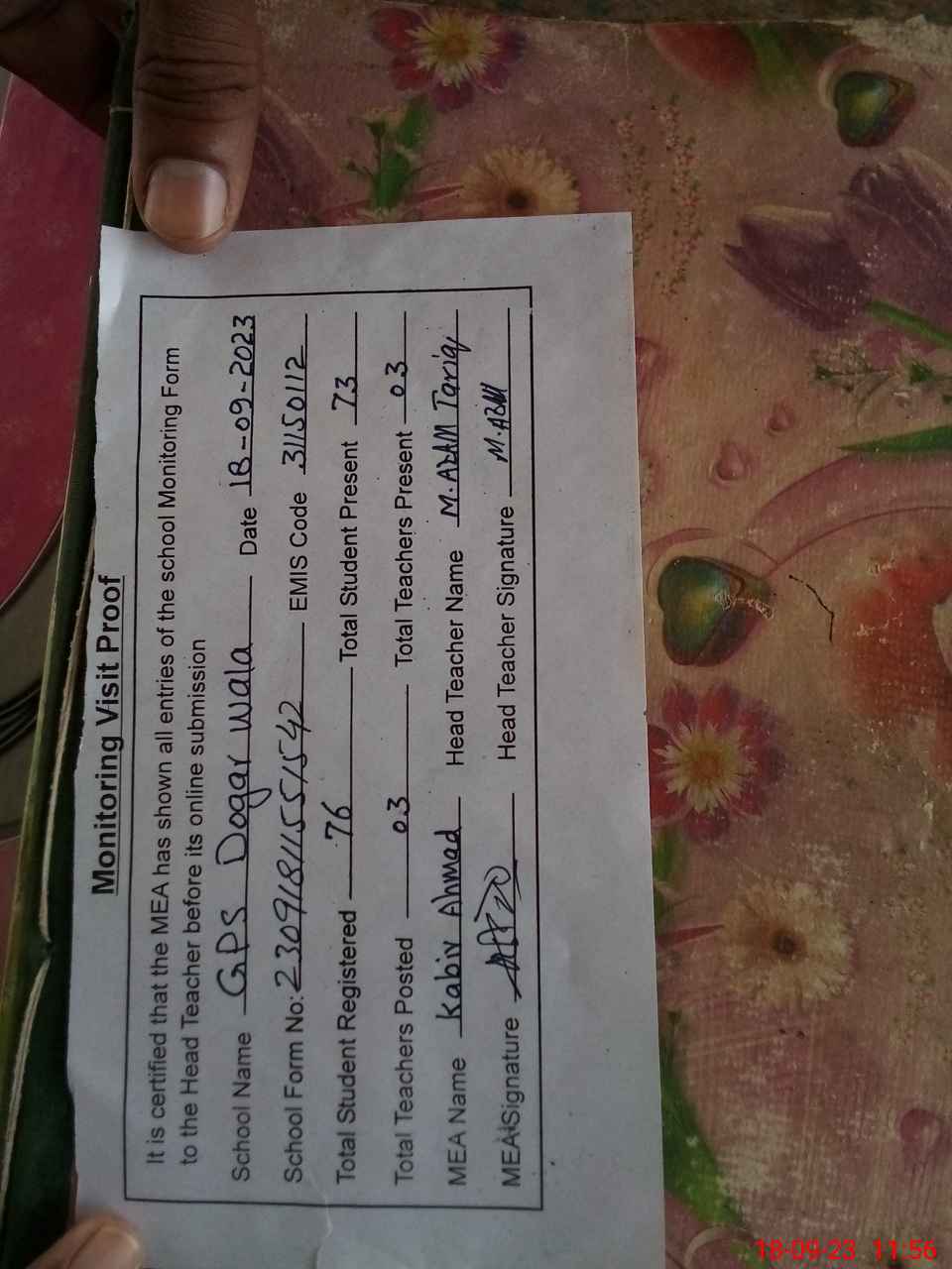 | EMIS Code: 31150112 | Name of School: GPS DOGAR WALA | |||
